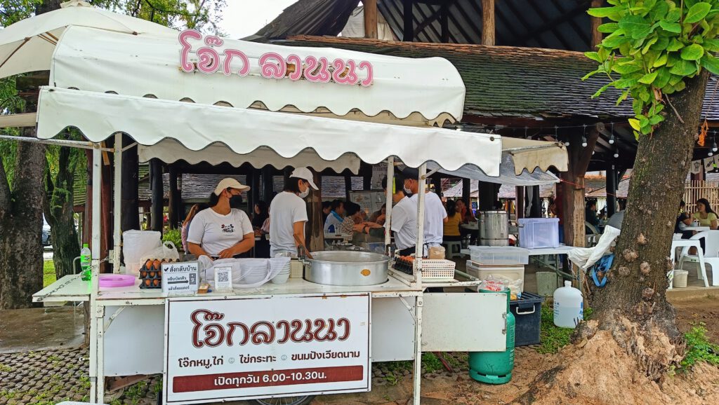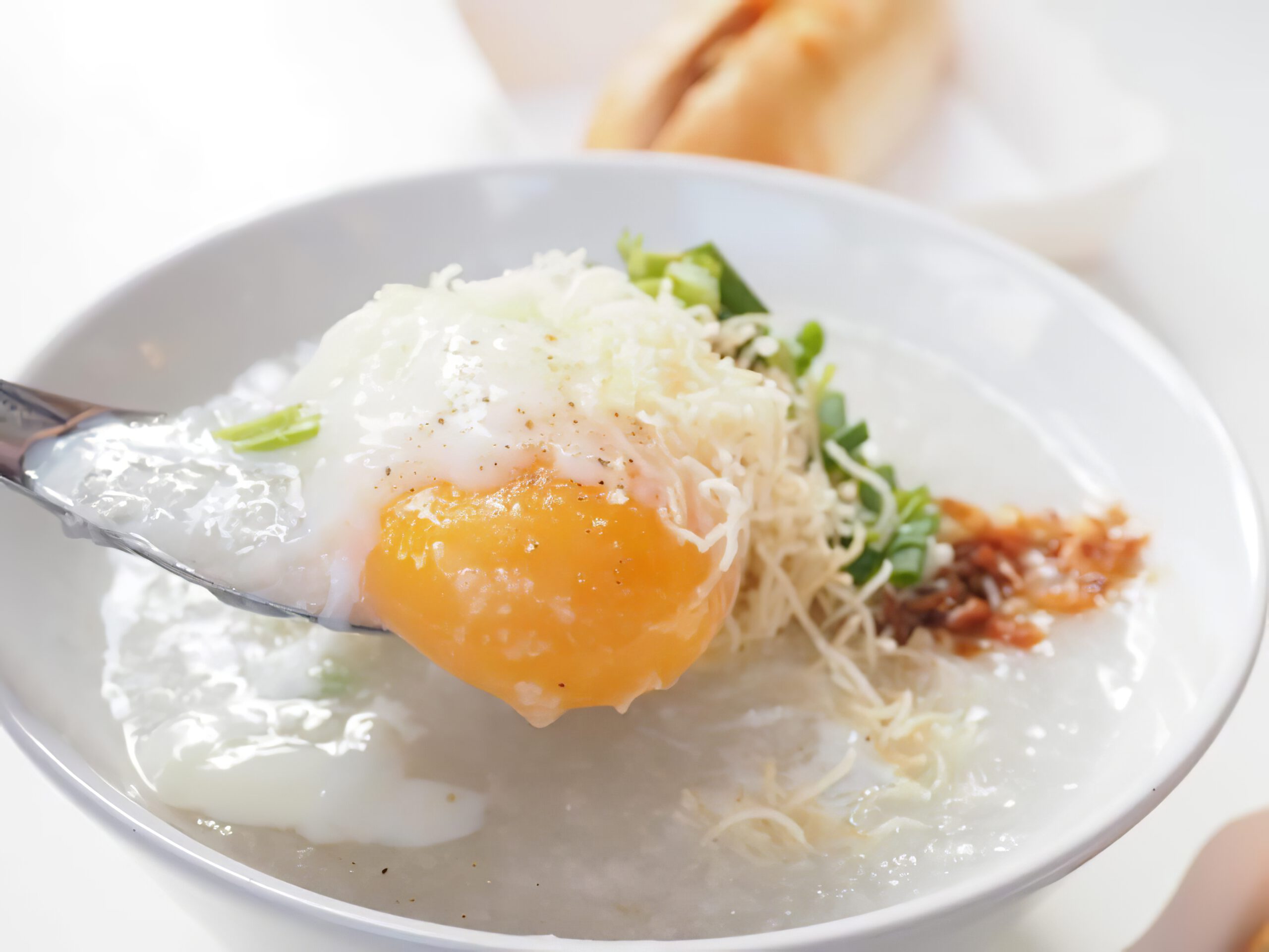 โจ๊กร้อน ๆ มีให้เลือก หมูหรือไก่ ไข่ออนเซ็น มีรสชาติความอร่อยที่แตกต่าง พร้อมเครื่องปรุงทำเอง ขิงสด พริกคั่ว น้ำส้มเพื่อเพิ่มความอร่อยในอีกระดับ
